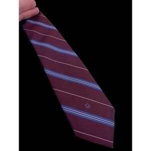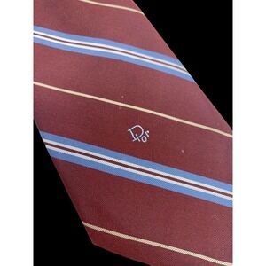 Vintage Dior Necktie Tie Spellout Designer 70s Maroon Blue Stripe 3" Wide