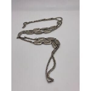 Vintage Direction One Necklace Silver Tone Chain & Textured Shiny Rectangle