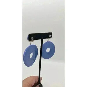 Vintage Disco Earrings 1970 1980 Big Hoops Ceramic Handmade Rhinestone Blue Mod