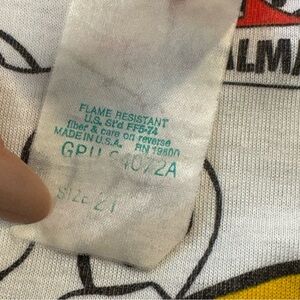 Vintage 90s Disney nightgown featuring adorable 101 Dalmatians pups on a red couch with spotted sleeves and ruffle trim. Soft, lightweight, flame-resistant fabric.