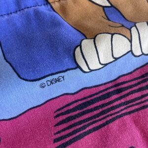 The product is a vintage Disney 90s The Lion King twin size flat sheet, featuring the iconic characters and themes from the popular animated movie. Made in the United States, this collectible bedding item is a nostalgic piece for fans of the Disney franchise. Perfect for adding a touch of retro charm to any bedroom, this flat sheet showcases the beloved characters from The Lion King in a classic design from the 1990s.