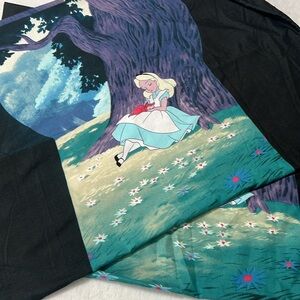 Vintage Disney Alice in Wonderland pillowcase set — set of 2. Good vintage condition with light signs of age consistent with use (see photos). Feature a large keyhole-style Alice artwork panel on a black background — great collector / decor piece for a Disney fan or nursery. Measurements shown in photos. Smoke-free, pet-free home. Offers always welcome!