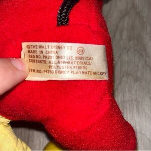 Retro Red & Yellow Everyone Loves Applause by THE WALT DISNEY engraved on back of head. Plastic Head Hands and Feet with Plush Body. Collectors Collectible Dead Stock with Tags but does have some scuffing and discoloring (see photos)