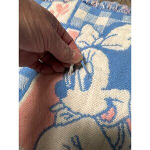 Vintage Disney Avon Baby Blanket Minnie Mickey Donald Woven Knit Pastel Pink & B