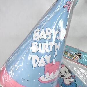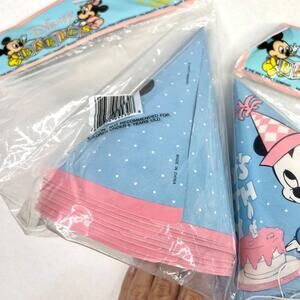 Set of two deadstock vintage Disney Babies themed party hats perfect for Baby's first birthday! Pink and blue with baby Mickey Mouse. I have two of these sets available as well as other Disney Babies party supplies, use the search bar at the top of my closet and create your own bundle!