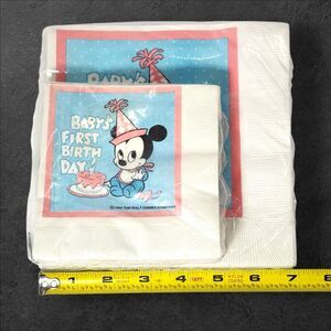 Vintage Disney Baby’s First Birthday Mickey Mouse Napkins Set of 2 1984 Licensed
