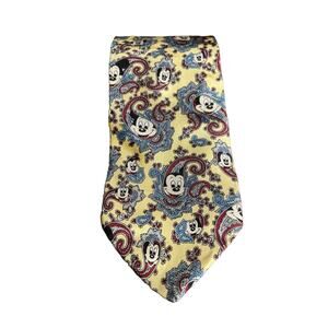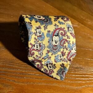 Vintage Disney Balancine Mickey Mouse face yellow paisley blue red men’s tie