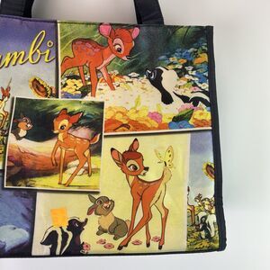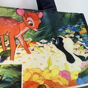 Keywords: Disney Bambi tote bag, navy blue Disney bag, Bambi and Thumper tote, Disney shoulder bag, cartoon print tote, reusable shopping bag, Disney gift idea, Bambi collage purse, Disney collector bag.