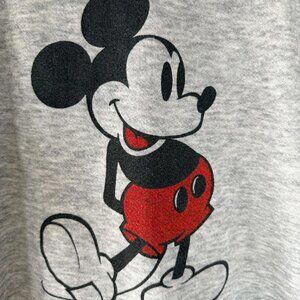 Vintage Disney Casuals Mickey Mouse crewneck sweatshirt in heathered gray. Features the iconic standing Mickey graphic in classic red, black, and white. This piece is from the discontinued Disney Casuals line that was popular in the late 80s and 90s—no longer in production and highly sought after by vintage Disney collectors.