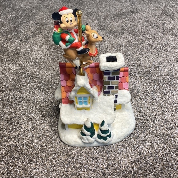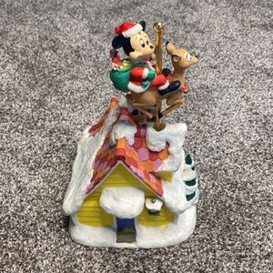 Vintage Disney Christmas Collection House . Mickey Santa on Reindeer Music Box