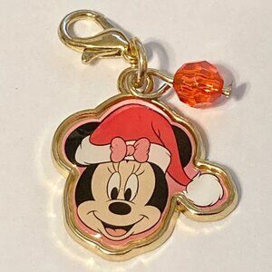 Vintage Disney Christmas Minnie Mouse Clip On Charm Bow Zipper Pull Santa Hat
