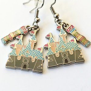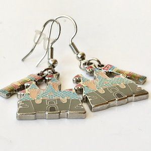 Vintage Disney Cinderella Castle Charm Earrings Disneyland Sleeping Beauty