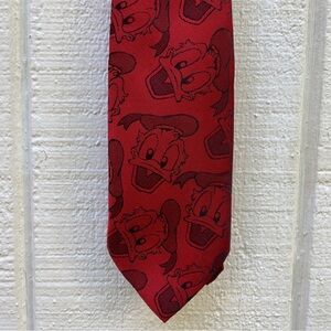 Balancine vintage Disney tie featuring Donald Duck. “The Tie Works”. Red. 3.5” at widest width. Total length is 56”.