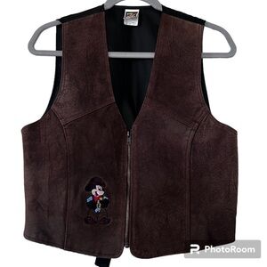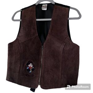 Vintage Disney Embroidered Mickey Mouse Suede Zip Front Vest size S/M