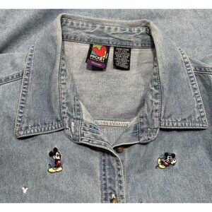 Vintage Disney Embroidered Minnie Mickey Pluto Button Denim Shirt Plus 26/28 W
