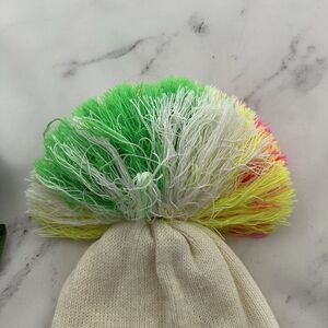 Vintage 80s Disney 'Aku Ankka' Team Donald Duck embroidered white and neon stripe pom pom beanie hat, made in Finland. It is free from any rips or stains.