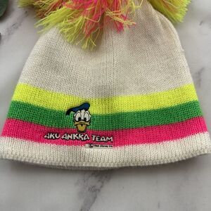Vintage Disney Finland Aku Ankka Team Donald Duck Pom Pom Beanie Hat Neon Stripe