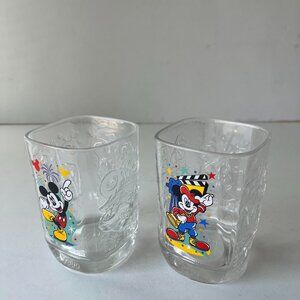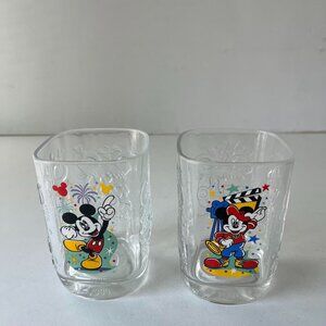 Vintage Disney Glasses Set of 2 - Mickey Mouse 2000 Commemorative Square Glasses