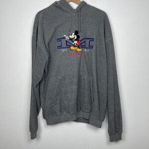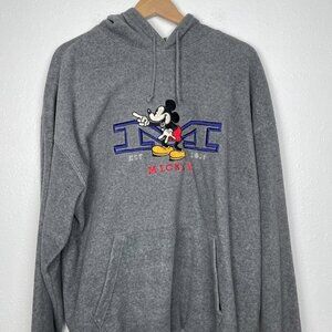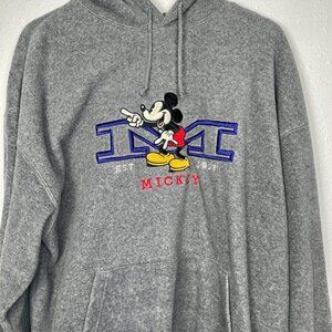 Vintage Disney Grey Embroidered Mickey Mouse Hoodie Sweatshirt Size: XL
