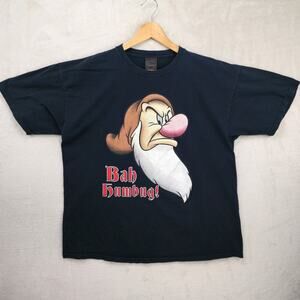 Vintage Disney Grumpy Bah Humbug Shirt XL Black Snow White Christmas Tee