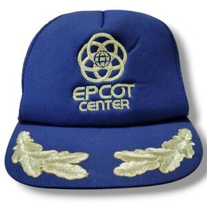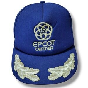 Vintage Disney Hat OSFM Vintage Epcot Center Hat Vintage Trucker Hat Snap Back Hat 80s 1980s Retro Hat Vintage Snap Back Hat Embroidery Embroidered Logo Blue With Gold Embroidery