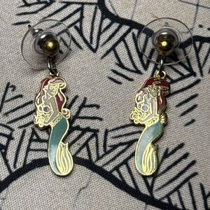 Vintage Little Mermaid dangle earrings. I have had these since I was a little kid but no longer wear them. Because I had them when I was a kid the regular backs were replaced with safety backs so unfortunately I no longer have the original backs but I did put a new pair of safety backs on these. Overall they are in really good condition but please see the images for exact quality.