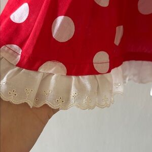 Vintage 1988 Disney Magic Minnie Mouse costume, girls size 6XL. 3 shiny buttons on the back. Embroidered eyelet trim along the bottom of the dress. Elastic sleeves. Great condition!