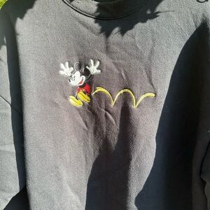 Classic black crewneck featuring Mickey Mouse embroidery. Perfect for Disney fans.
