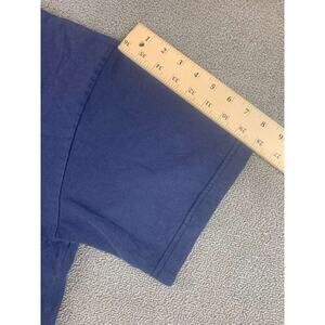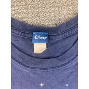 Soft navy tee with “Disney Dreams Florida” front graphic featuring Mickey Goofy Donald and Pluto. Relaxed crewneck short sleeves with vintage fade; great souvenir style piece. This is a double a stitch.