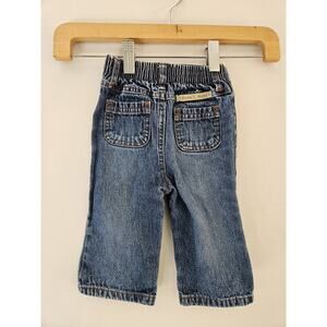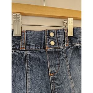 This product is a pair of vintage Disney Mickey and Minnie baby girls jeans in size 12 months. The jeans feature a snap closure, are made of 100% cotton denim in a blue color, and are machine washable. They are part of the Disney Baby brand and have a paperbag style. Perfect for casual occasions, these jeans are ideal for play and are suitable for the winter and spring seasons.