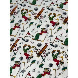 This vintage Mickey & Co polo shirt features an all-over print design with Goofy golfing, bringing a fun and nostalgic touch to classic Disney apparel. The vibrant colors and playful graphic make it a standout piece for fans of vintage Disney and sports-themed clothing. Preowned in good condition with a stain on the back of the collar (shown in pictures), this polo is a great addition to any collection.