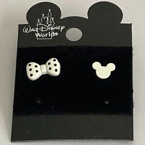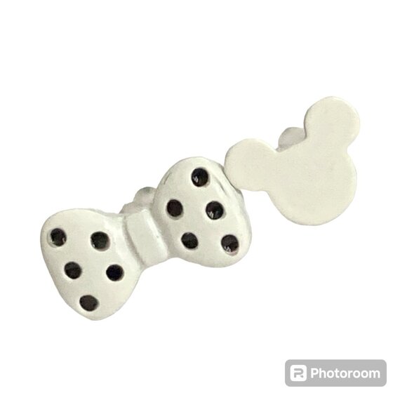 Vintage Disney Mickey Minnie Mouse Earrings Ears Bow Dots Icon White Disneyana