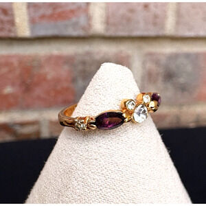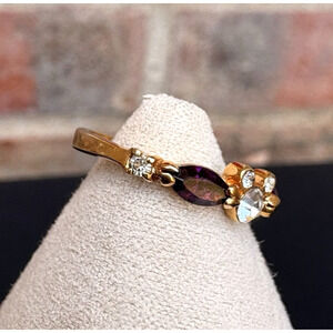 Vintage Disney Mickey Mouse Amethyst February Birthstone Gold Tone Size 5.25