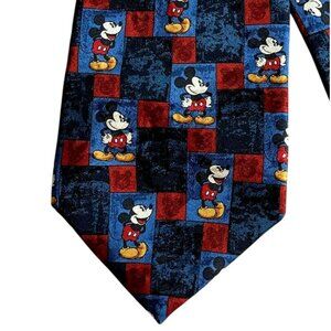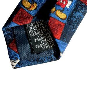 Vintage Disney Mickey Mouse Checkerboard Print Silk Necktie Made In Italy