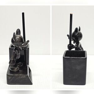 Vintage Disney Mickey Mouse Desk Organizer Notes Pen Pencil Holder, Marble look Dark gray acrylic, plastic.