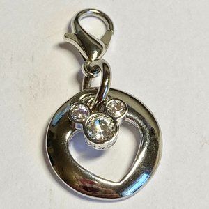 Vintage Disney Mickey Mouse Ears Charm Heart Crystal Signed Zipper Pull Bracelet