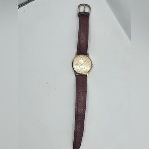 Vintage Disney Mickey Mouse Gold Toned Lorus Watch with Leather Strap