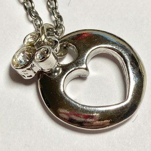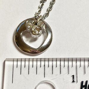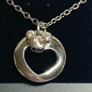 Vintage Disney Mickey Mouse Necklace Ears Heart Crystal Charm 18" Signed