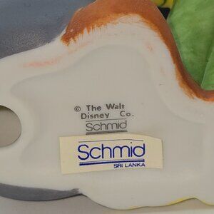 This collectible ceramic figurine features Mickey Mouse dressed as a leprechaun, holding a pot of gold. Produced by Schmid for Disney, it showcases intricate detailing and vibrant colors. A charming addition to any Disney collection or seasonal décor.
