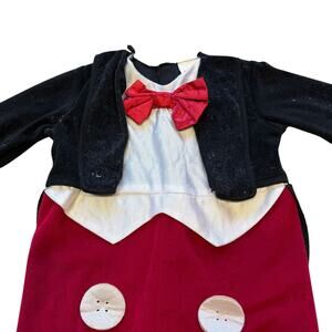 Flaws: stubborn lint on black velvet, faint untreated stain just beside bowtie; overall good vintage condition