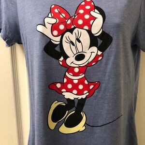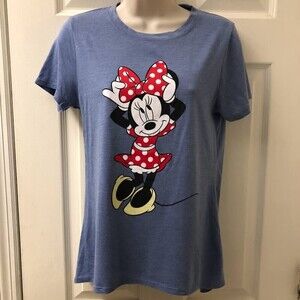 Vintage Disney Minnie Mouse Light Blue Women's Knit T-Shirt Small Graphic Tee. Shirt is vintage pre-owned. Please see all photos for visible condition. 65% polyester 35% rayon. RN 55219. Approximately 23 inches long x 15.5 inches pit to pit. It isn't cotton but still feels soft.
