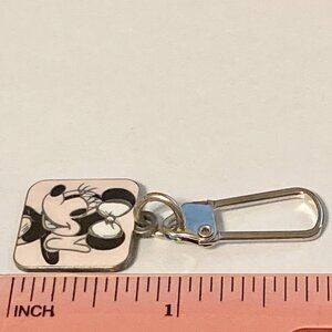 Vintage Disney Minnie Mouse Zipper Pull Purse Charm Signed Charm Pink Bow Enamel