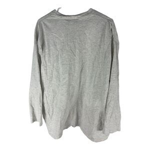 This vintage Disney Originals T-shirt features an embroidered Mickey Mouse design, with a nod to the 90s and Pocahontas. The gray, cotton shirt has a crew neckline, long sleeves, and a pocket with Mickey Worldwide printed on it. It's a size XL and has a regular fit, with Pockets as an added feature. This shirt is pre-owned and has a stain, but is still a great addition to any Disney or vintage collection.