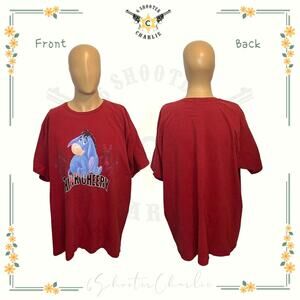 Vintage Disney POOH Eeyore Think Cheery Short Sleeve T Shirt Red Plus Size 2XL
