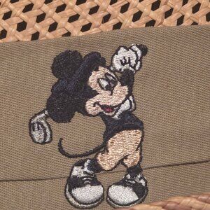 Step back into Disney nostalgia with this Vintage Disney Pro Collection Straw Golf Hat! This timeless piece combines sporty style with classic Disney charm — featuring a structured straw design, breathable woven texture, and a signature embroidered Mickey Mouse emblem on the front and Mikey Mouse golfer logo on the side.