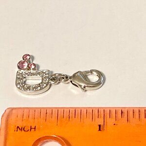 Vintage Disney Pink Crystal Mickey Mouse Ears Charm Clip On Initial Letter D