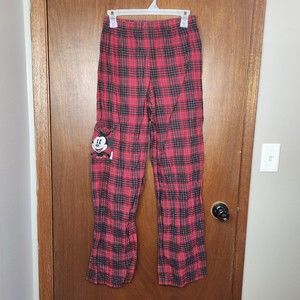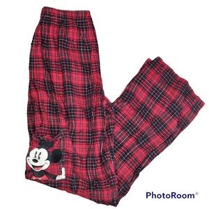 Vintage Disney Plaid Mickey Mouse Red Pajama Pants Size Small Unisex