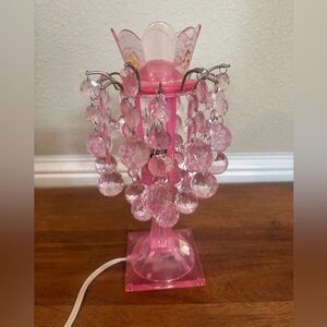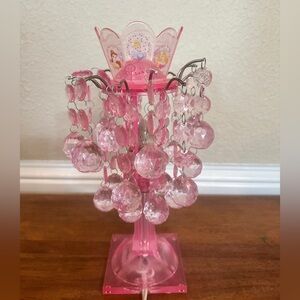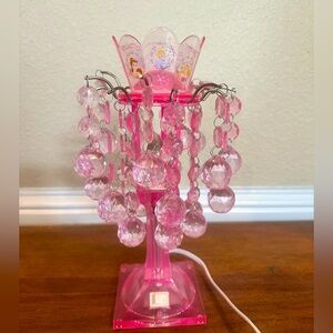 Vintage Disney Princess Pink Crystal Chandelier Table Lamp, Bell, cinderella etc