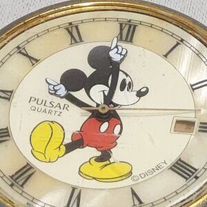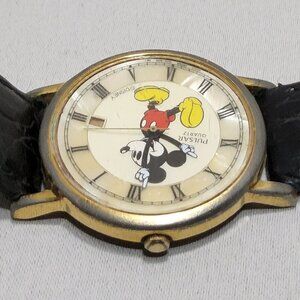 Vintage Disney Pulsar Mickey Mouse Mother of Pearl Watch Black Leather