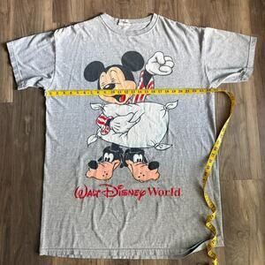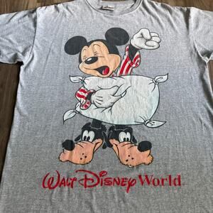 Vintage Disney Sleep Shirt Mickey Goofy Slippers Gray USA Walt Disney World